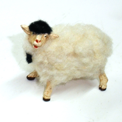 Wollschaf weiß mit kleinen schwarzen Flecken