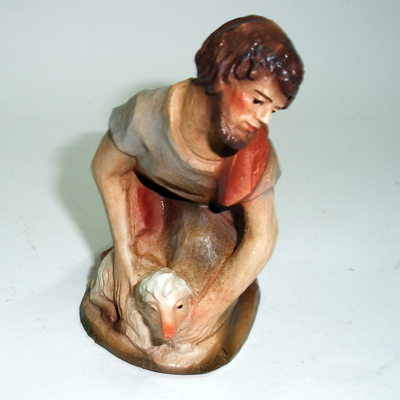 Hirte kniend mit Schaf